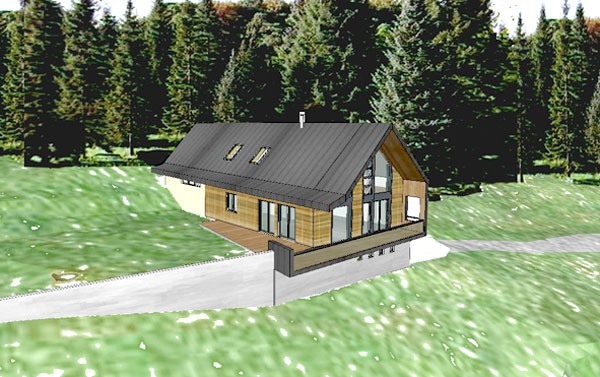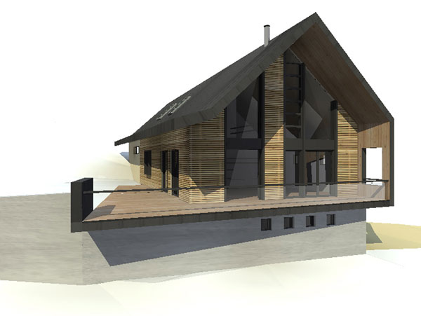 HABITAT Rumilly (74) 2008 Maître d´ouvrage : PrivéConstruction d’un châlet de montagne contemporain en partie haute d’un terrain en pente situé à Rumilly (Haute Savoie - 74).
