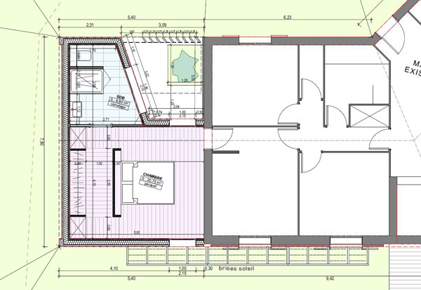 La piscine et l´extension de la maison sur le côté Est permettent de revaloriser complètement l´habitation existante. La maison initiale, de type "maison constructeur extremement basique" est completement transformée et "englobée" par le projet qui redefinit ainsi un ensemble d´allure contemporaine parfaitement cohérent plutot que de construire des éléments isolés et indépendants disséminés sur le terrain.