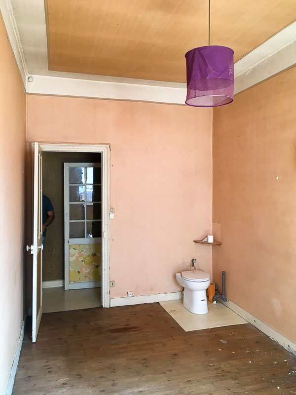Salle de bain et wc sont les seules pièces réellement fermées et cloisonnées toute hauteur. Le reste de l´appartement est conçu comme un seul grand volume principal, traversant depuis la ruelle au Nord et la façade sud en coeur d´ilot. Chambre et dressing
